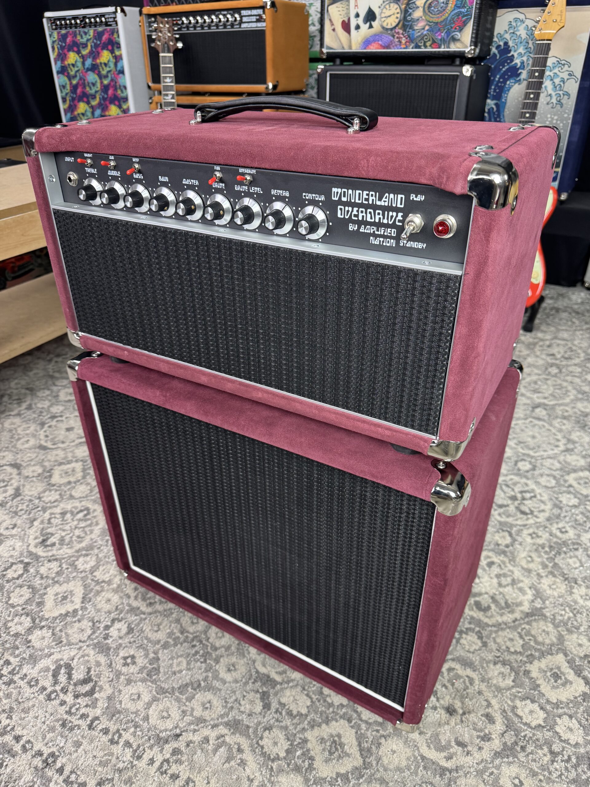 Amp has no issues and only about 3 months of use on it. It has been sitting on our rack for the last 12 months. It was completely inspected and refreshed by Amplified Nation and re-housed in these BRAND NEW Maroon suede head and NOS ‘standard’ size 1×12. The standard size was discontinued a couple years ago; they sound awesome with a punchy response and excellent articulation.